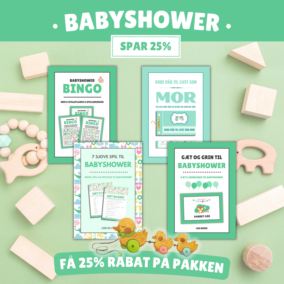 Babyshowerpakken indeholder masser af sjove lege og underholdning til babyshower. I pakken får du: