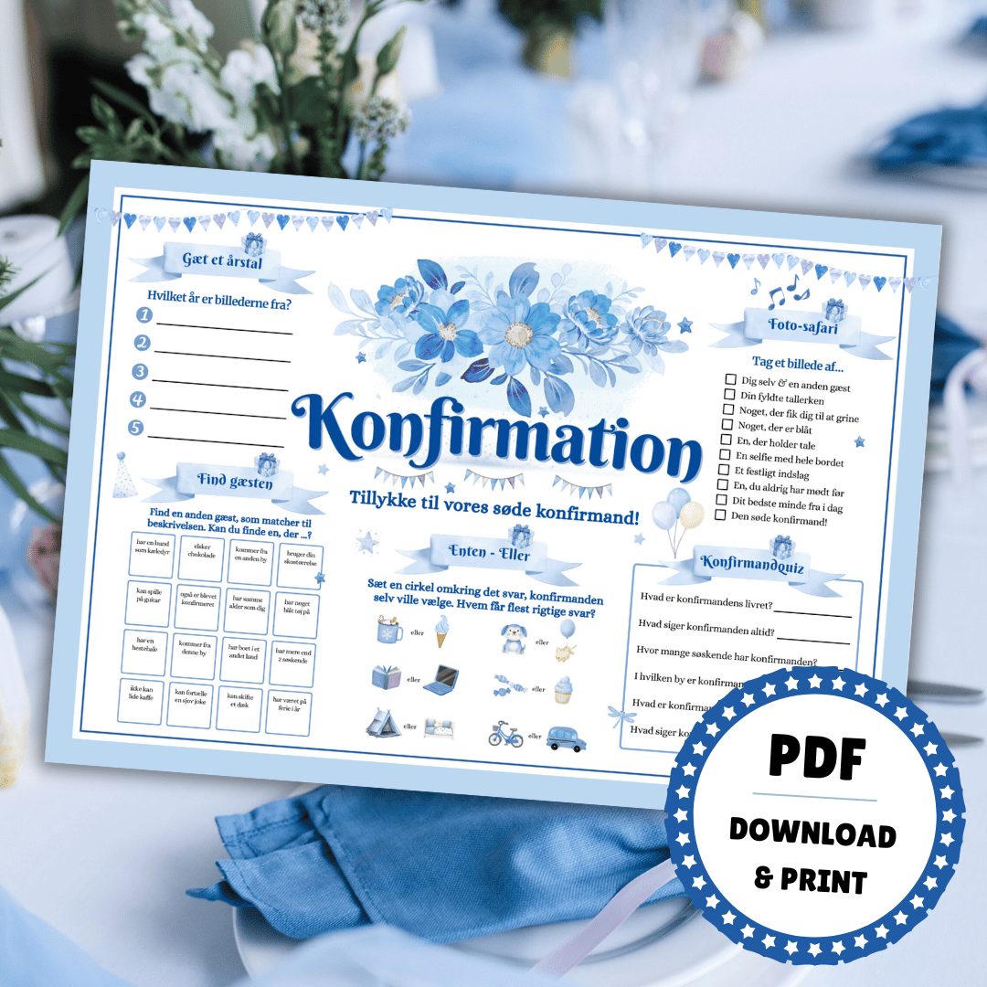 Dækkeservietten får gang i snakken mellem gæsterne med det samme. Den er nemlig fyldt med sjove festlege og spørgsmål om konfirmanden, som I kan quizze med på, imens maden serveres, konfirmanden hyldes, og gæsterne hygger sig. Her kan alle være med – uanset hvor godt man kender konfirmanden og hinanden.