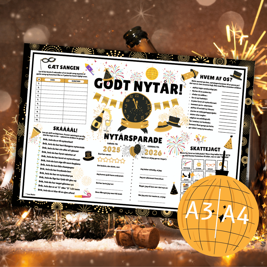 Så er I klar til skåle nytåret ind! Husk kuglepenne eller blyanter til alle og sjove præmier!