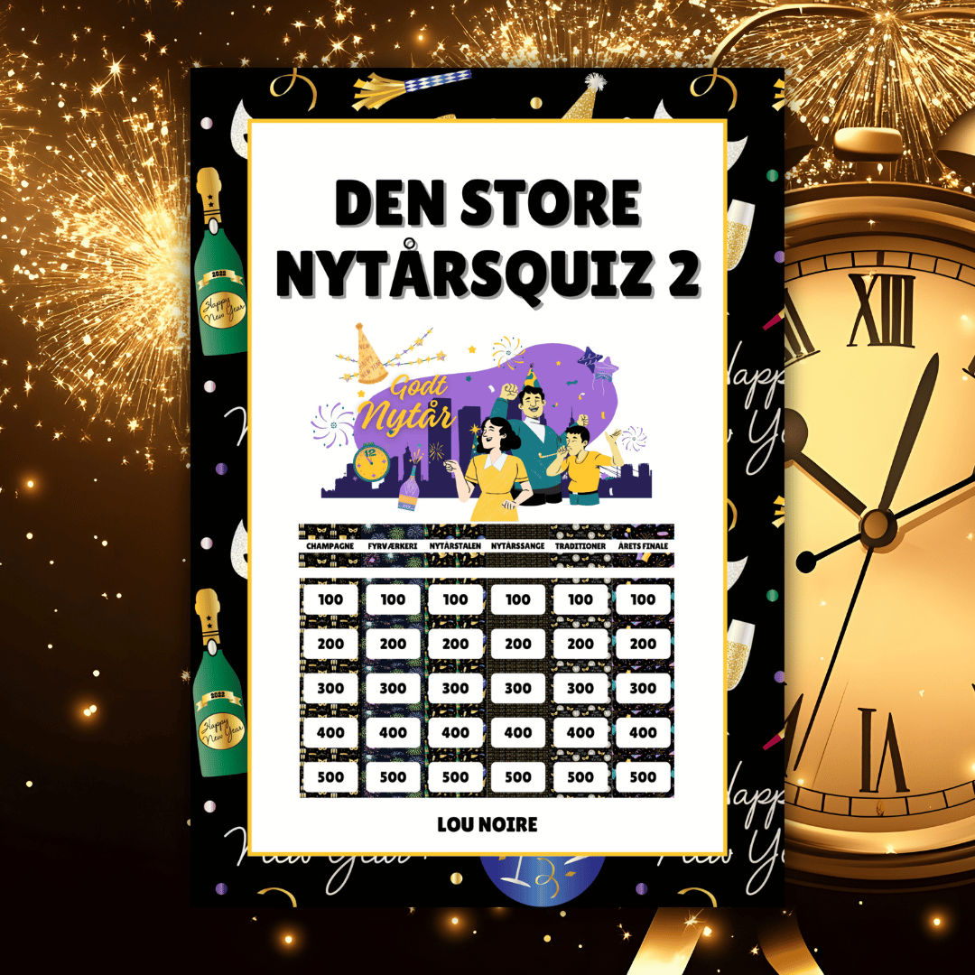 Titel: Den Store Nytårsquiz 2 – Forfatter: Lou Noire – Forlag: Pretty Page – Udgivelsesår: 2025 – Format: PDF – 14 sider
