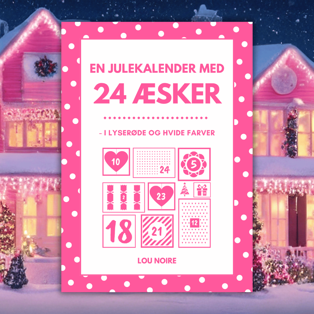 Titel: En julekalender med 24 æsker – i lyserøde og hvide farver – Forfatter: Lou Noire – Forlag: Pretty Page – Udgivelsesår: 2021 – 1. udgave – Format: PDF – 26 sider
