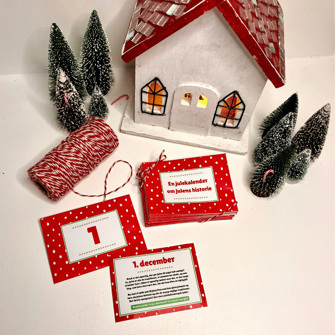Julekalenderen er udformet som en quiz med spørgsmål om julens traditioner hver dag igennem december. Dagen efter får du svaret på gårsdagens spørgsmål samt et nyt spørgsmål, som du kan glæde dig til at få svaret på. Quizpakken indeholder 24 små kuverter samt 24 kort med spørgsmål og svar. Du får også blanke kort og kuverter med.
