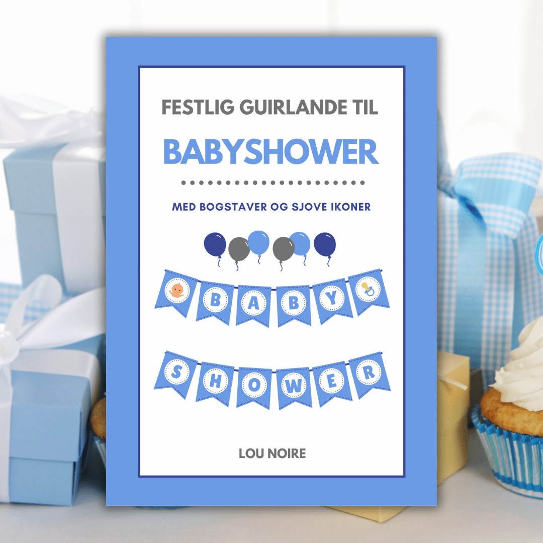 Titel: Festlig guirlande til babyshower : blå – Forfatter: Lou Noire – Forlag: Pretty Page – Udgivelsesår: 2021 – 1. udgave – Format: PDF – 19 sider