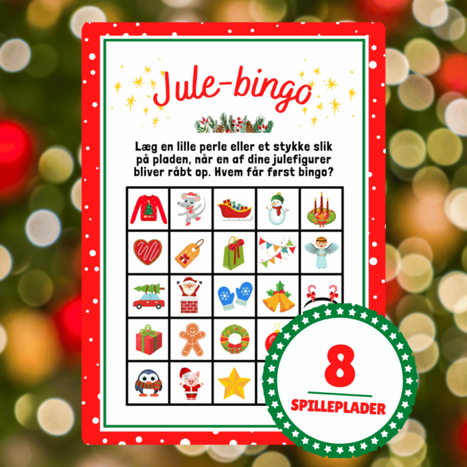 Jule-bingo er et sjovt spil, både for voksne og børn, også de helt små, for tallene er skiftet ud med sjove tegninger af alt det, vi elsker ved julen! I den lange ventetid fra 1. december og indtil juletræet bliver tændt, er der masser af plads til underholdende lege og spil, der hjælper med at få tiden til at gå. Her er det oplagt med et spil jule-bingo, hvor både små og store vil elske de skønne julemotiver på bingopladen!